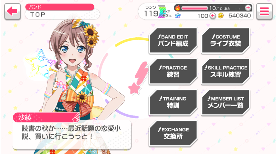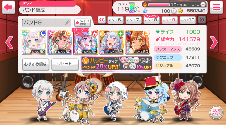Once you have members to choose from, you can form your band. The cards’ band and attributes play a part in events as it increases the points you get so take note of that!